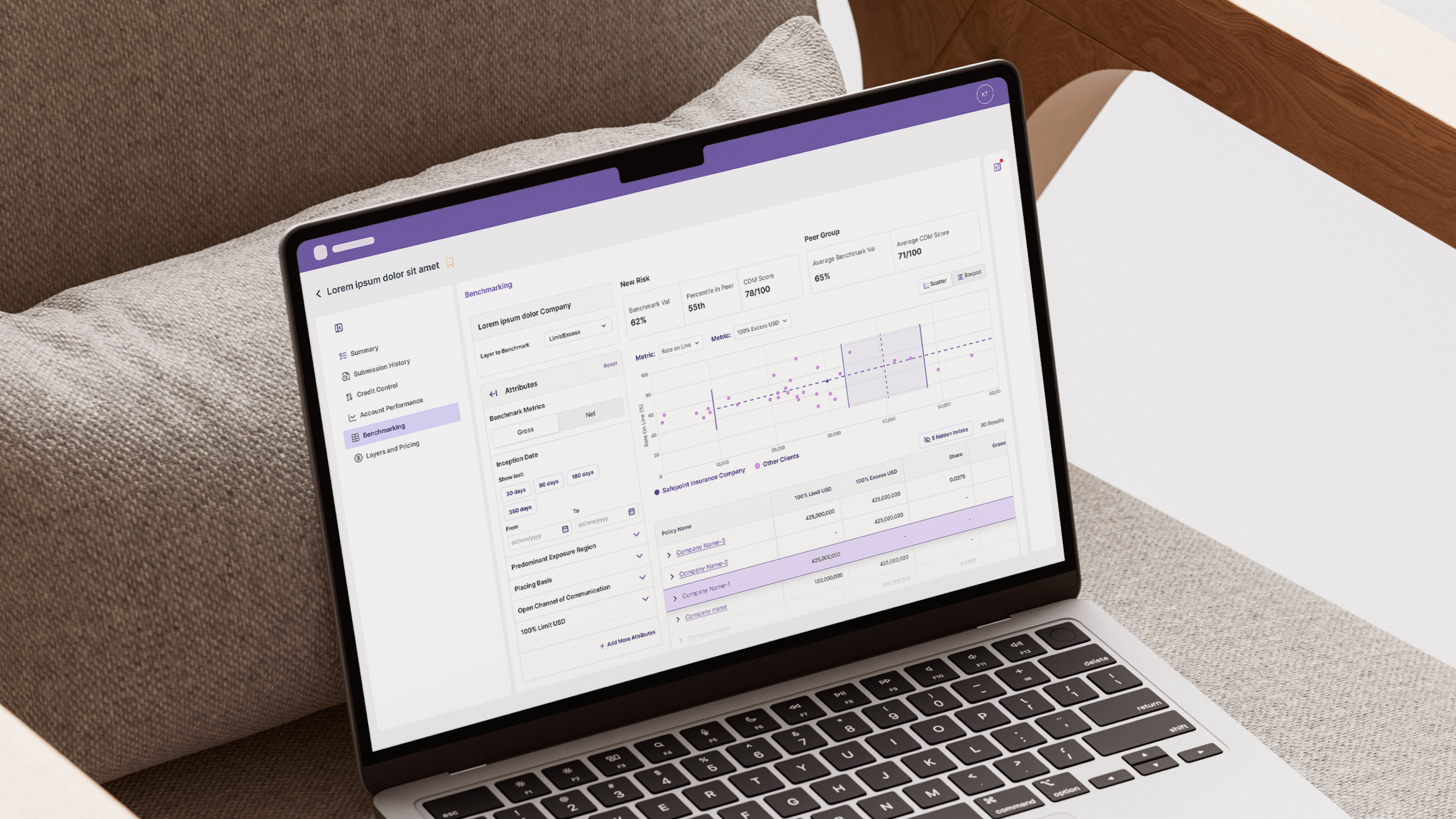 We designed a benchmarking section that visually distinguishes submissions by exposure, data quality, and comparability. This reduces manual judgement, makes data reliability immediately apparent, and supports faster, more confident pricing decisions.
